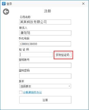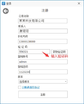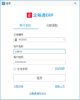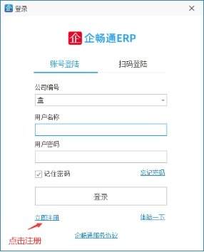 企畅通ERP允许用户注册公司账号,打开登录画面后点击“立即注册”即可跳转到注册界面。填入公司注册信息。