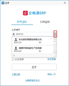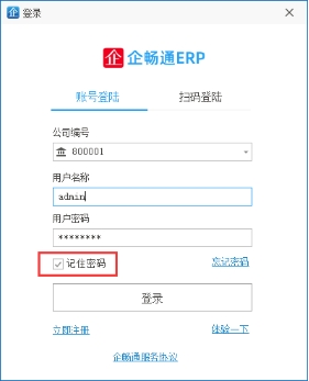 登录时保存密码,待下次登录时可不用在此输入密码,如果存在多个公司可从公司编号下拉选择登录账号进行登陆,密码保存的有效期是3个月