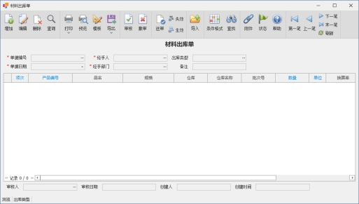 仓库材料出库单,适用于材料出库作业,例如:发料,调账等情景。在使用进销存版本时,所有出库都可使用此单据出库。
