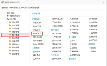 使用EXCEL文档填写资料来批量导入BOM资料,本步骤包含新增BOM和新增BOM同时新建料的步骤。