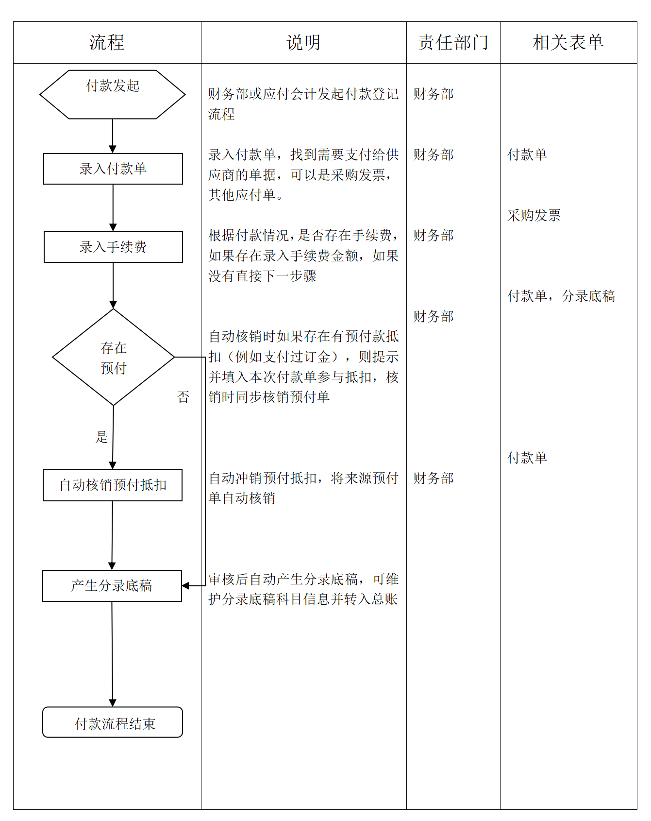 付款单是支付供应商款项后进行系统核销,应付账款核销时使用的单据,采购发票,其他付款单,预付单都需在付款单进行核销。